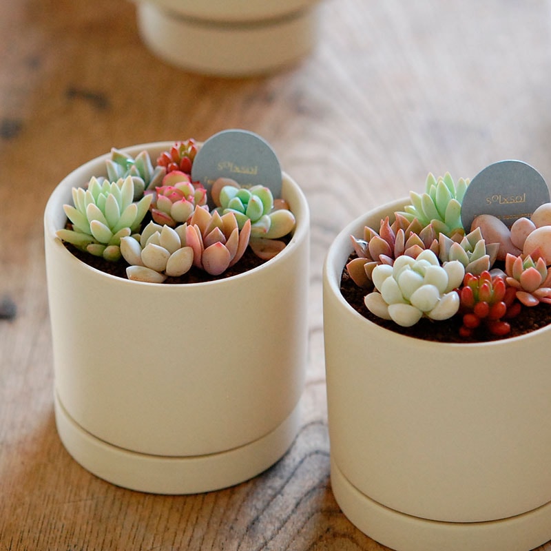 多肉植物に魅了され、サボテン専門店にて3年間修業した松山美紗を中心に2004年より多肉植物/サボテン専門ストアsolxsolを始動。