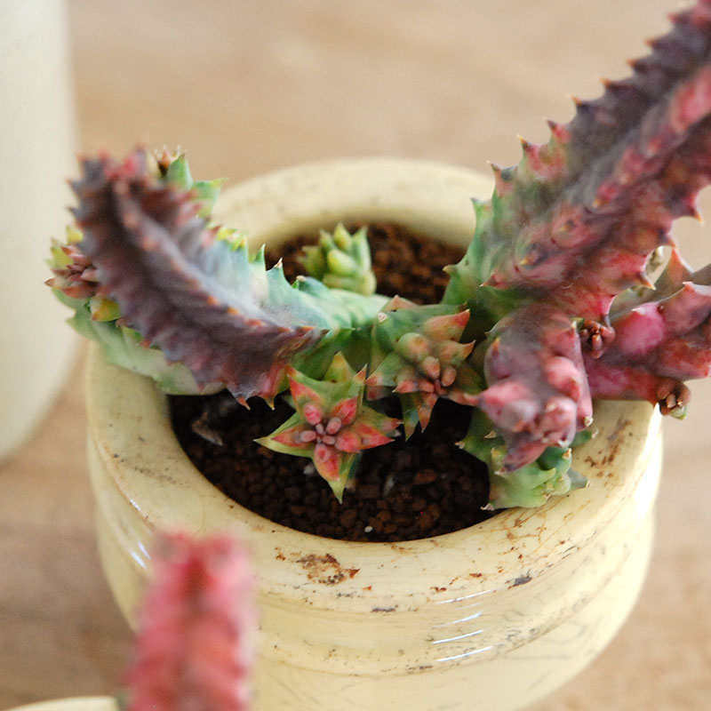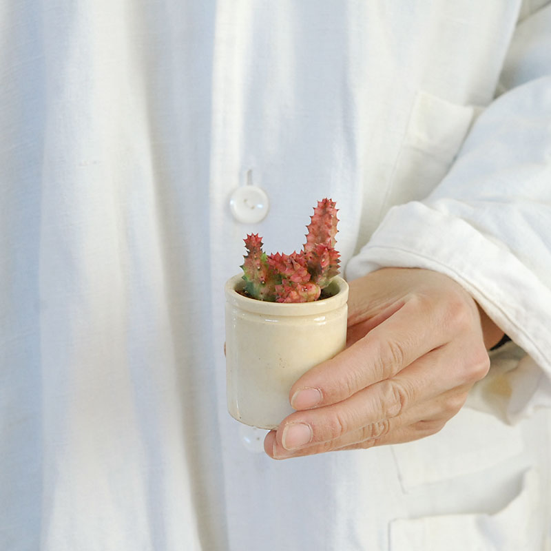 器はイギリスのアンティークです。温かみのある存在感が多肉植物とマッチしています。