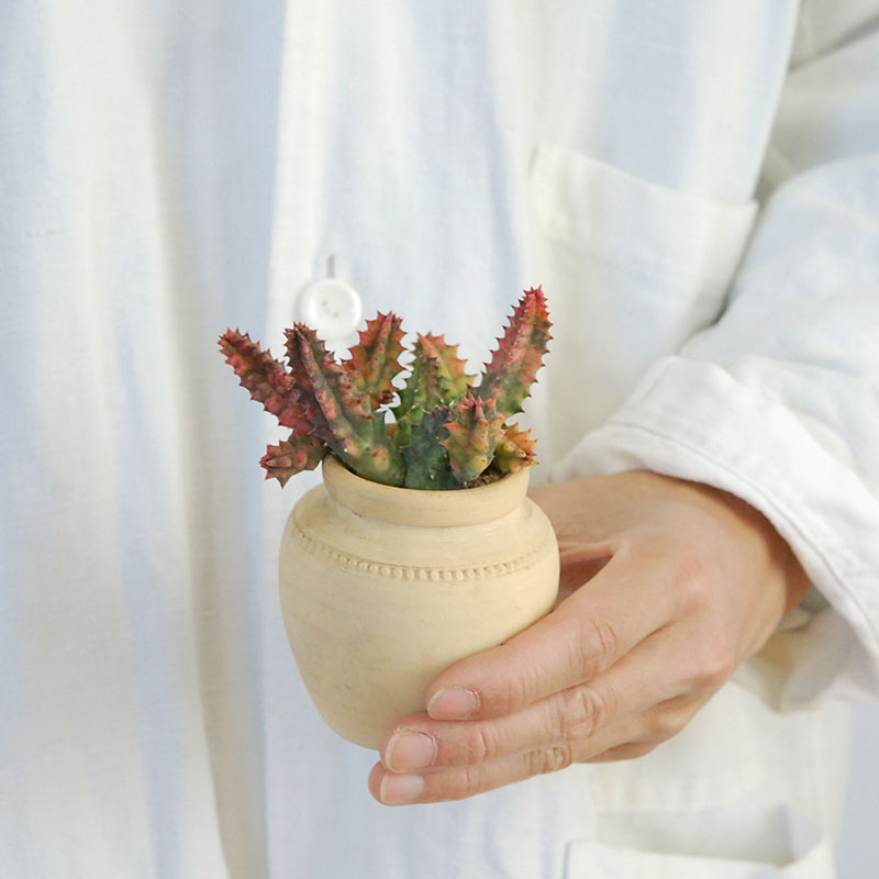 植物のサイズ、器の性質により、ラッピング、タグ、紐は多少異なります。お任せとなります、ご了承くださいませ。