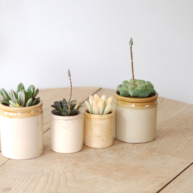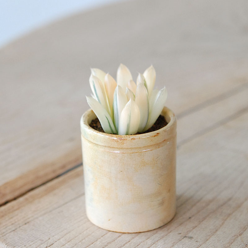 器はイギリスのアンティークです。温かみのある存在感が多肉植物とマッチしています。