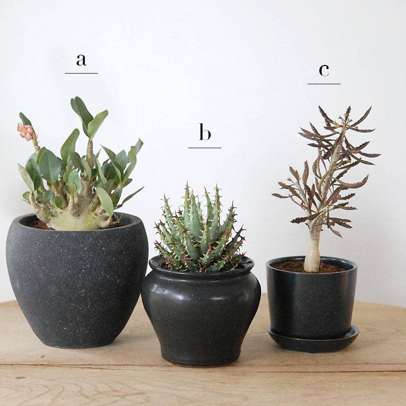 b:渡邉由紀さんの作品。横に水が抜ける穴があります。 c:穴があり専用の受け皿がつきます。