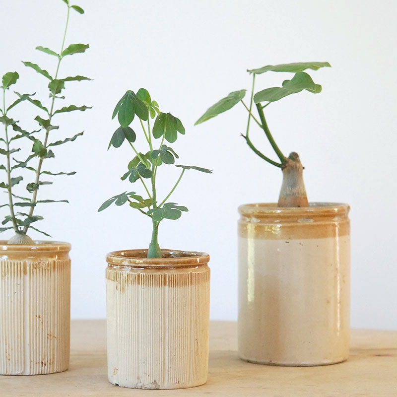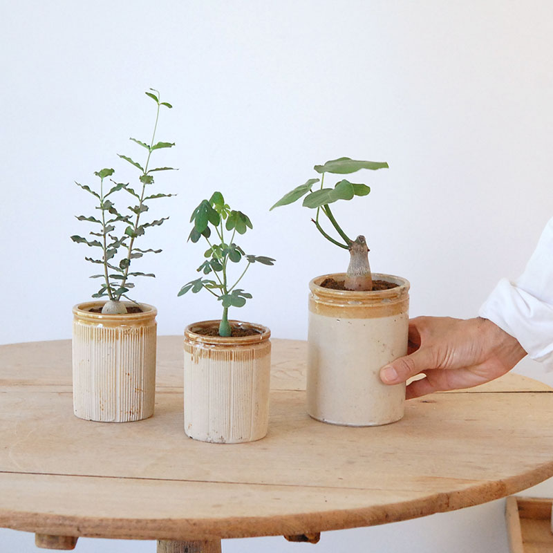 1930年代のもので、温かみのある存在感が多肉植物とマッチしています。