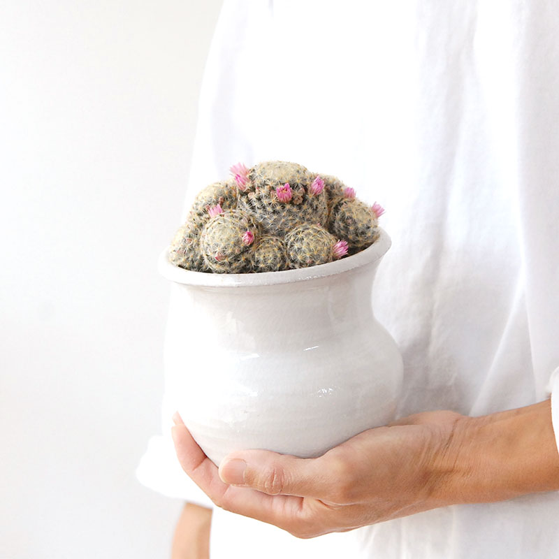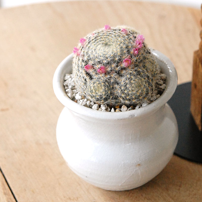 Mammillaria 明星 x white pot (壺型)