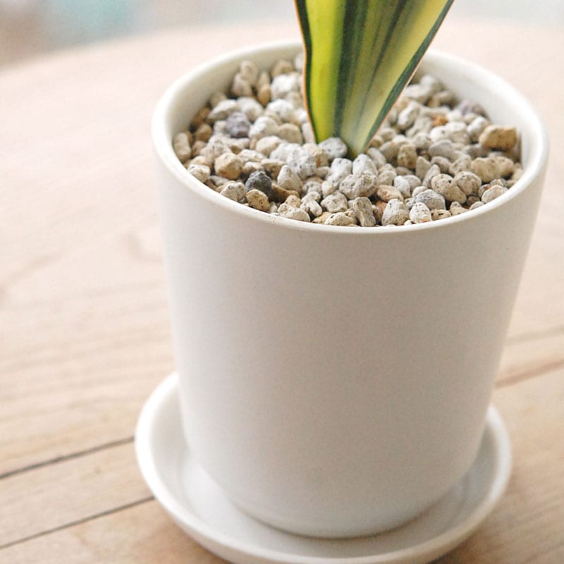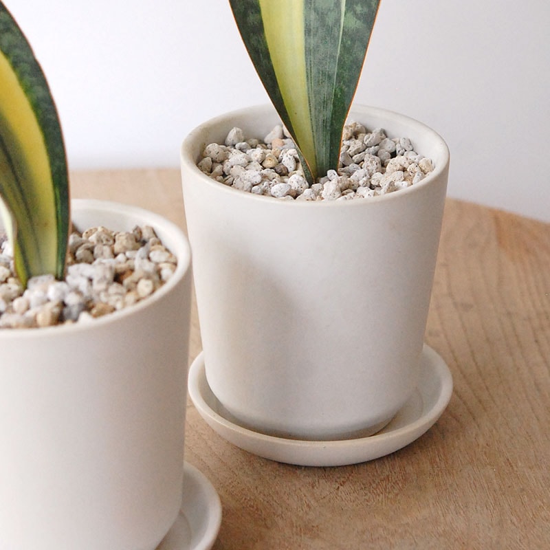 鉢底に穴があり、専用の受け皿がつきます。
