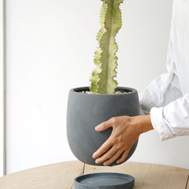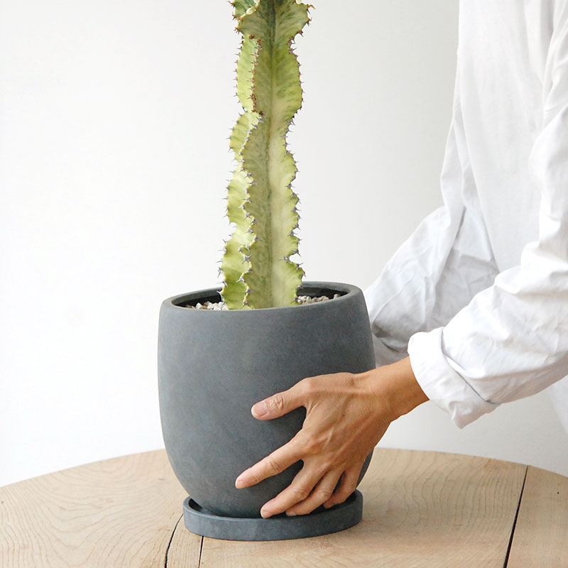 鉢底に穴があり、専用の受け皿がつきます。