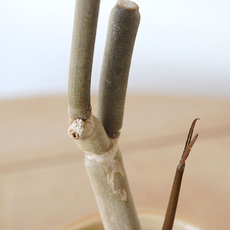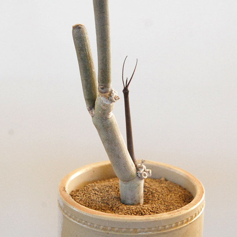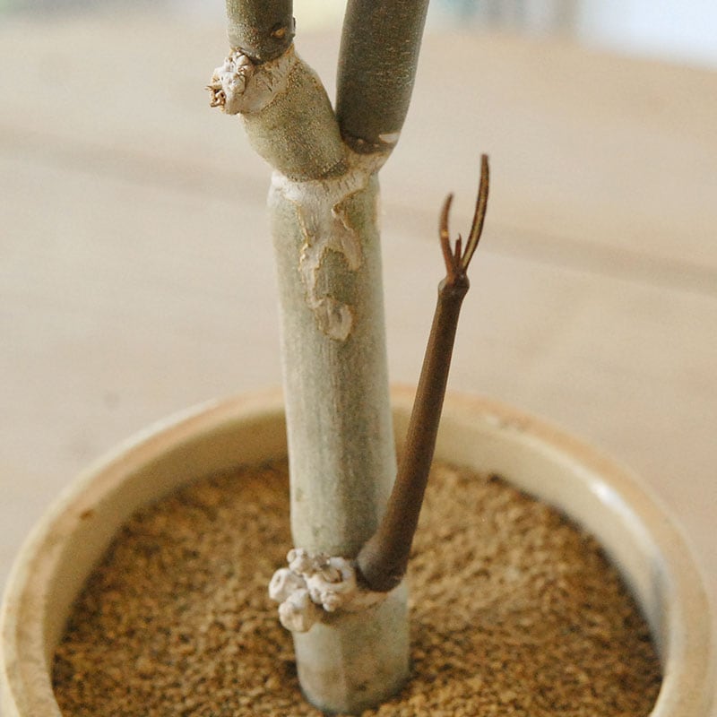 変化と言えば、この様に1年に1度、新しい茎を整形してます。茶色い新芽が出ます。