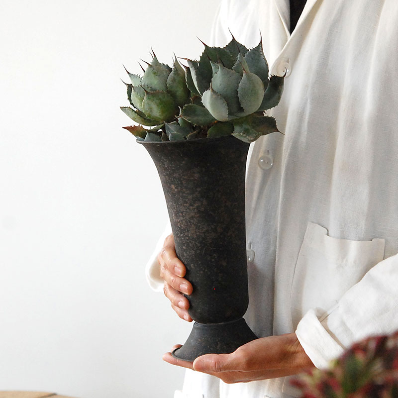 シックな鉢との組み合わせで植物の存在感がより引き立ちます。