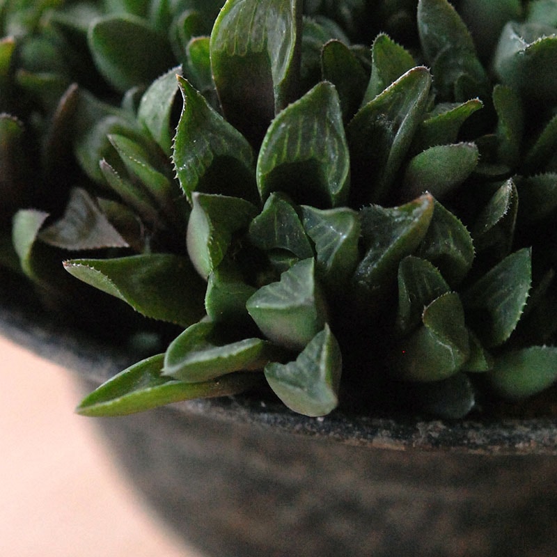 シックな鉢との組み合わせで植物の存在感がより引き立ちます。
