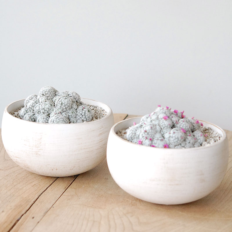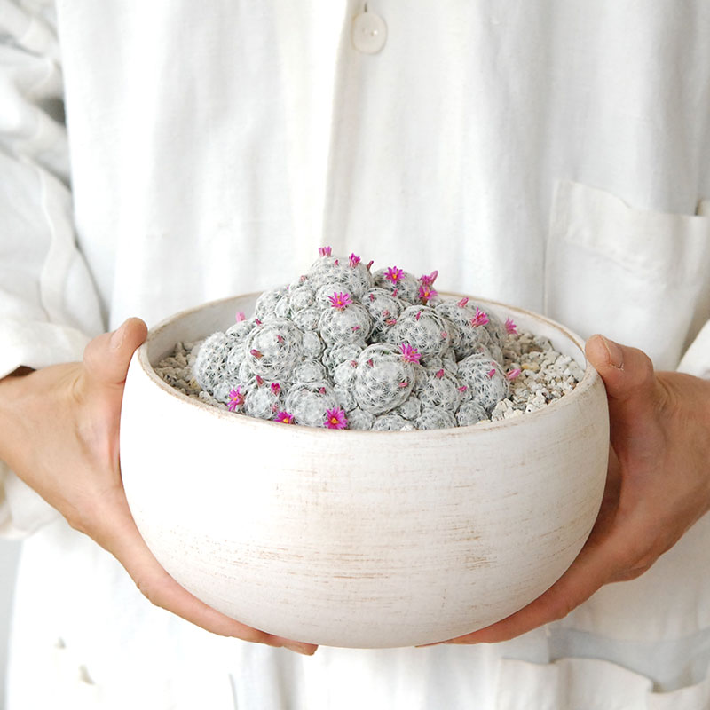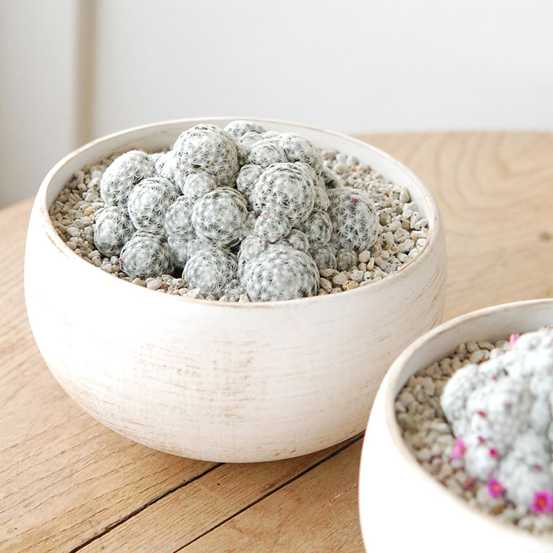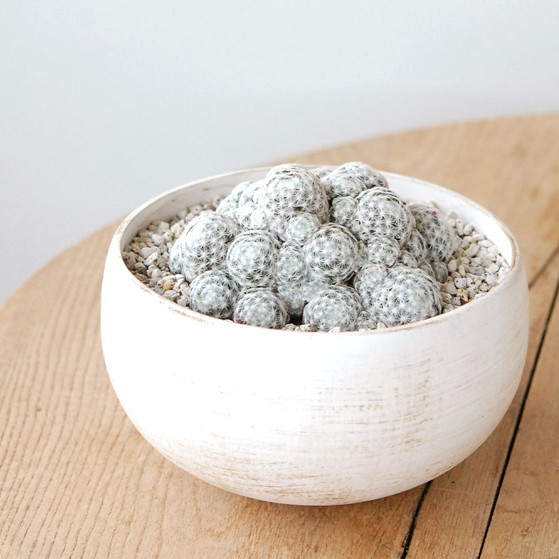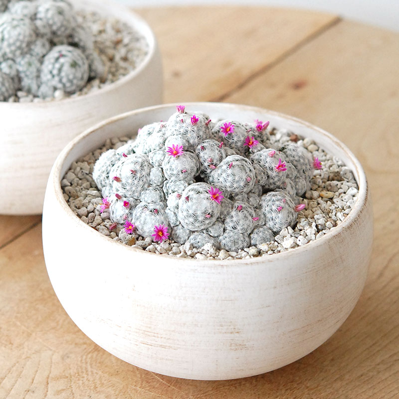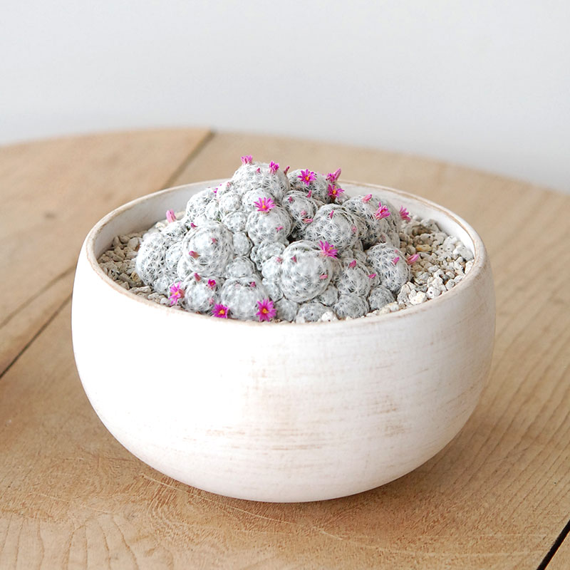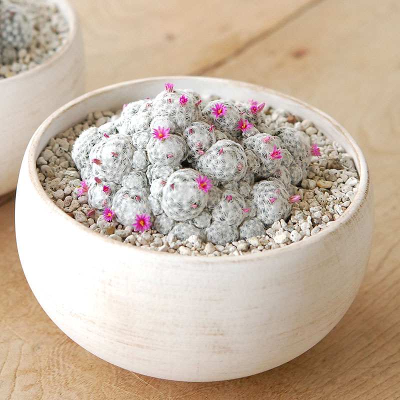 【 送料無料! 】Mammillaria 姫春星 x ホワイトロウポット