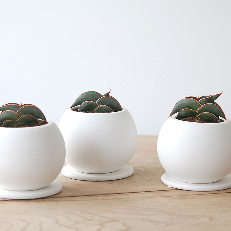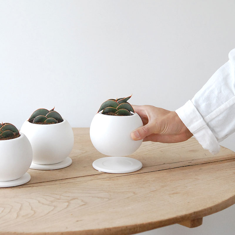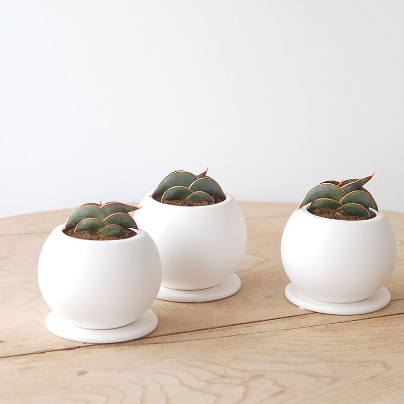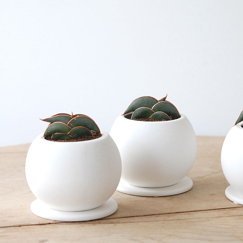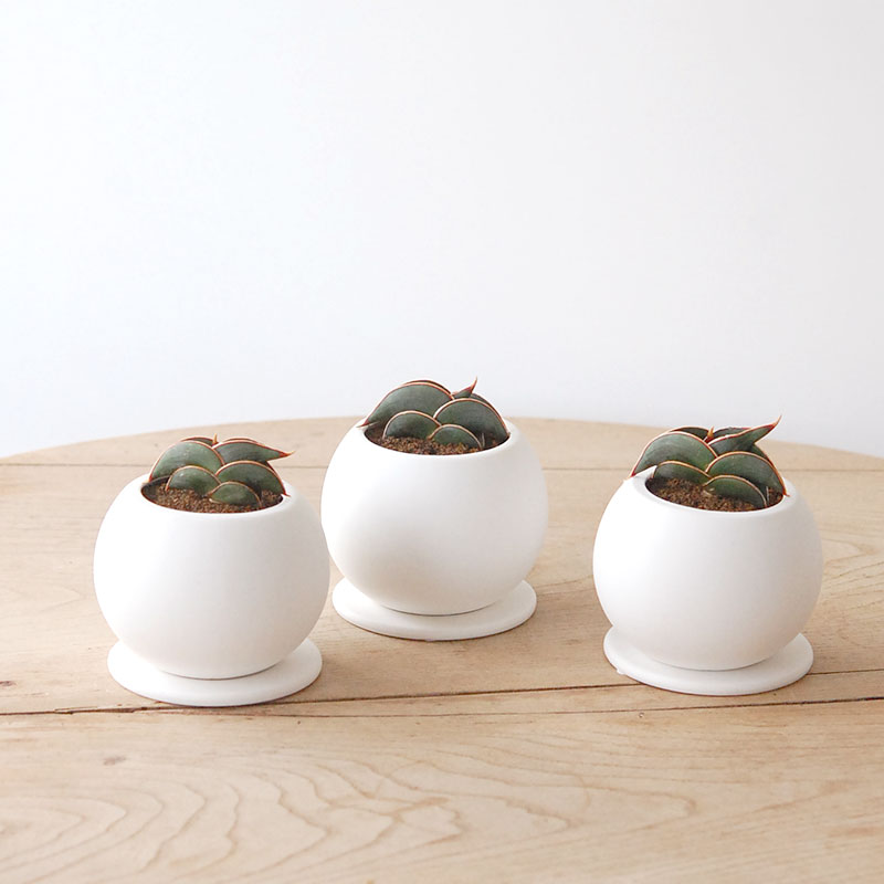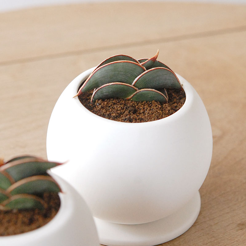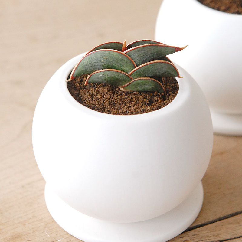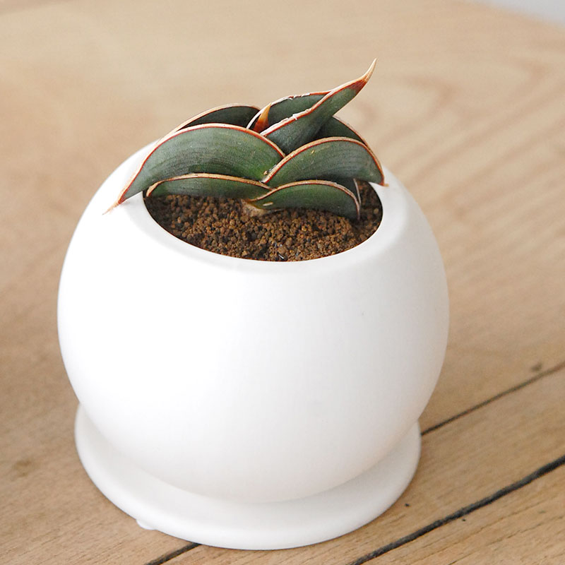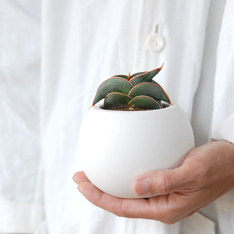 器は陶器のマットポットになります。丸いコロンとした姿が可愛らしく植物の美しさを引き立ててくれます。