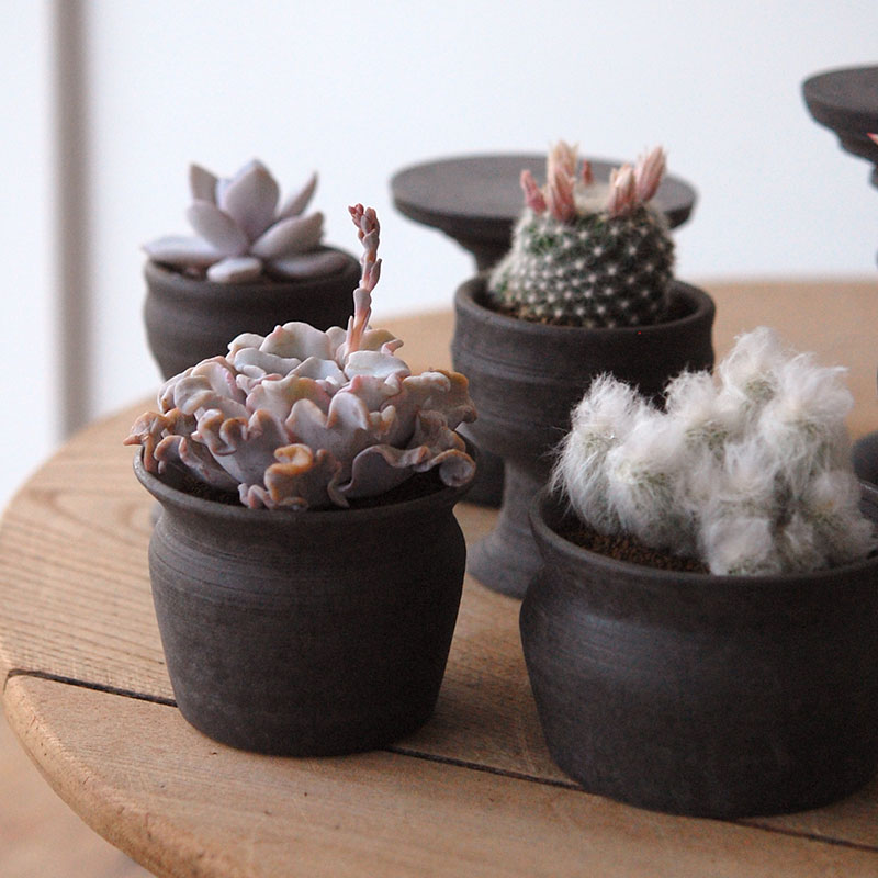黒い鉢も多肉植物の表情がグッと引き締まっていいですね。[荻野揺子さん]Yoko Ogino